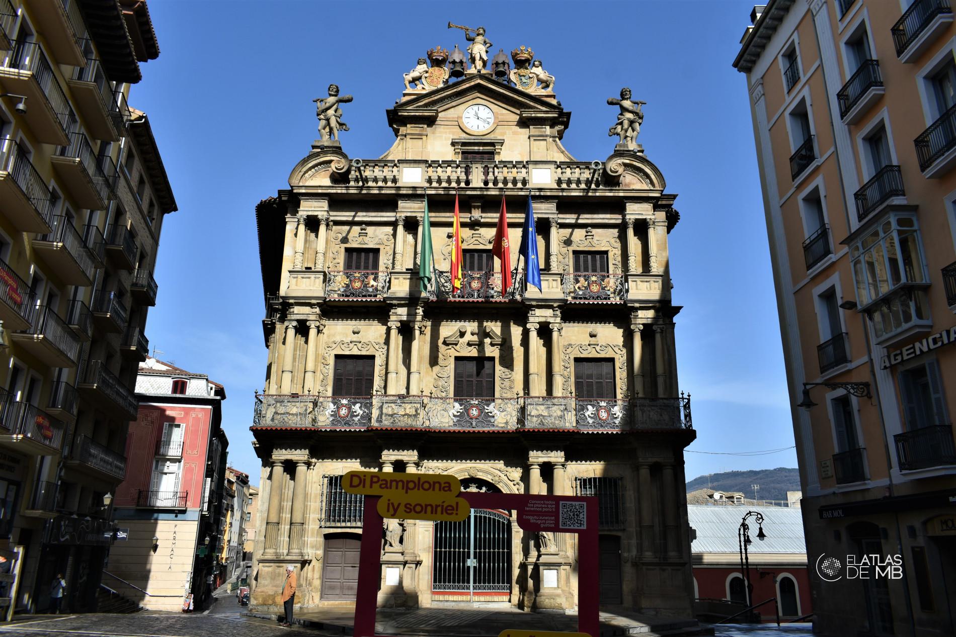 Llegarás hasta las inmediaciones del Museo de Navarra, en el antiguo hospital de la Misericordia, y con importantes objetos históricos, y aquí cerca verás en la calle que baja la Hornacina de San Fermín, donde los corredores de los sanfermines cantan una plegaria al santo antes de correr. Desde aquí continuamos hasta el punto más reconocido de la ciudad: la Plaza Consistorial y el Ayuntamiento de Pamplona, un bellísimo edificio barroco. Desde su balcón se lanza el chupinazo de inicio de los festejos de San Fermín, a las 12 el día 6 de julio, y terminan el 14 a las 12 de la noche con la canción “Pobre de mí”.