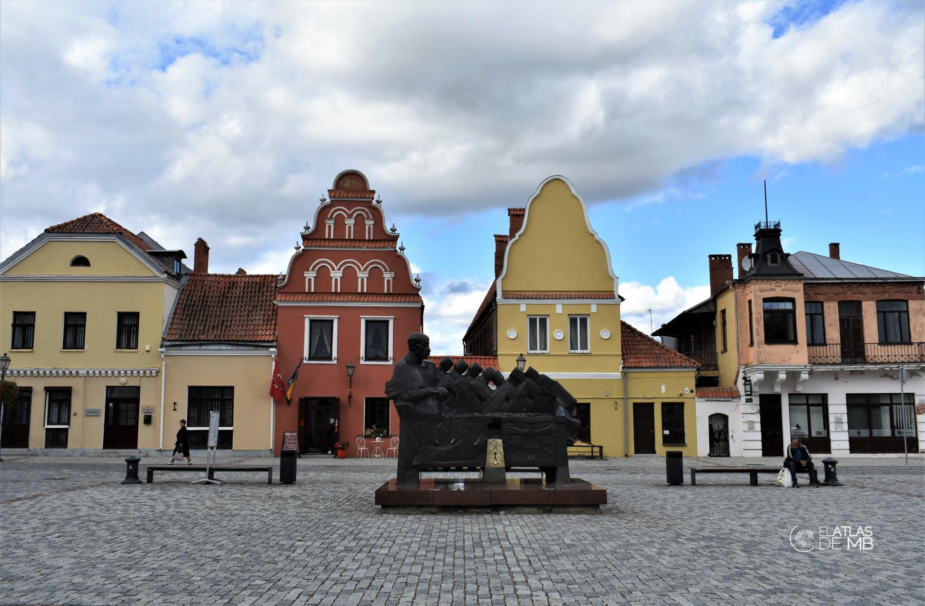 Más adelante, verás una torre con un reloj que forma parte de la Iglesia calvinista, o evangélica reformada, de 1653. Dentro de ella se encuentran las tumbas de la familia noble, por lo que también se la conoce como el mausoleo de la familia Radvila. Por último, llegarás hasta la plaza del mercado, donde está la fotografía más típica de Kedainiai: las casitas de colores estrechas y pequeñas. Es aquí donde se encuentran las casas de los comerciantes escoceses, como la de George Anderson, John Arnot, George Bennet o James Gray, además del Ayuntamiento de la ciudad. La plaza está presidida por el monumento a la familia Radvila. Además, en Kedainiai puedes visitar un templo ruso de 1652, un minarete (el único de Lituania), o acercarte hasta el centro geográfico de Lituania, donde hay un monolito que lo atestigua.